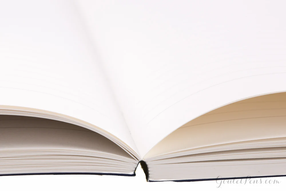 This B5-sized notebook features 96 sheets of white super-smooth ruled paper and reinforced stitched binding. Each sheet has 30 lines, spaced 7mm apart. Created for Apica's 25th anniversary, the Premium C.D. series features Apica's ultra-smooth "A.Silky 865 Premium" paper and silver embossed accents on the dark blue cover.