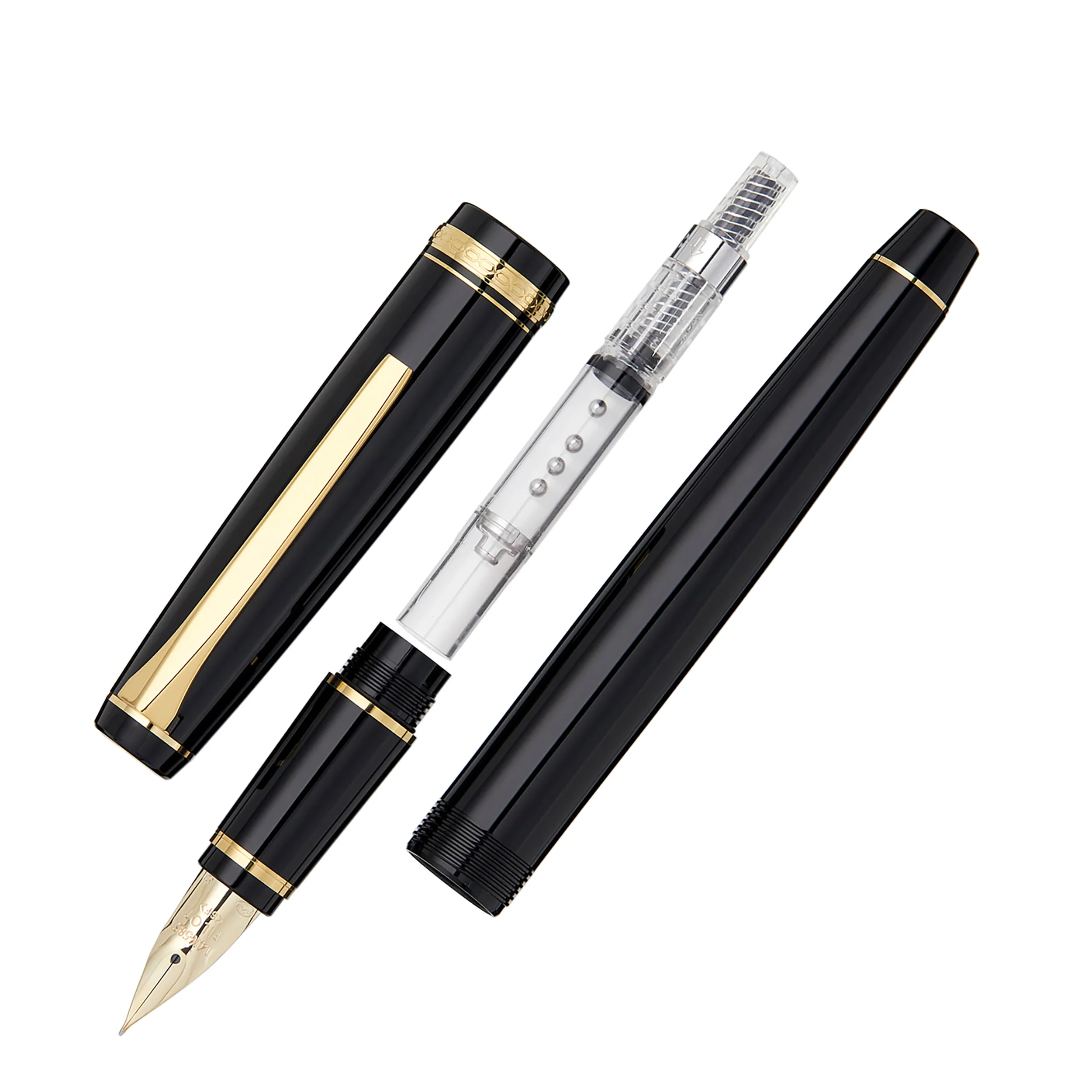 The Pilot Falcon (previously known as the Namiki Falcon) is an iconic pen in the fountain pen world. It is most famous for its 14k gold soft nib, which provides line variation when you change your writing pressure. This solid black fountain pen has gold trim and includes a Con-40 converter and a Pilot/Namiki ink cartridge, packaged in a Pilot gift box.