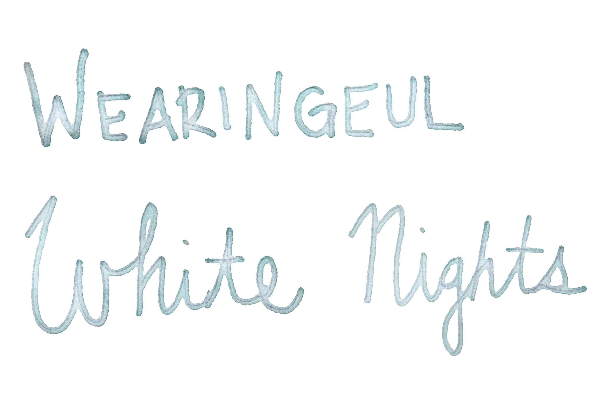 Wearingeul White Nights is a blue ink that has hints of teal and lavender. It comes in a 30ml glass bottle and has added silver and red shimmer.